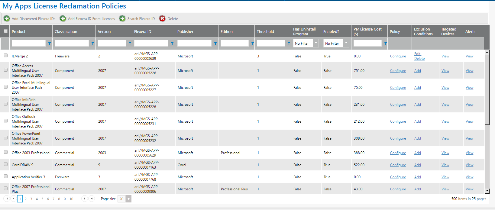 • Add Discovered Flexera IDs —Click to view a list of all applications in the enterprise that have a Flexera ID identified.
