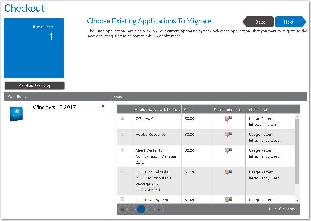 • If the Enable requester to specify which existing applications to migrate option is also selected on the Site Management > Settings > Deployment > OS Deployment tab, then the requester will be able to specify which of the existing applications to migrate. If this option is not selected, all applications are automatically selected and cannot be unselected.